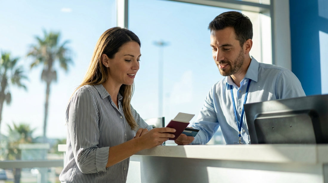 At pick-up, the rental desk is confirming three things: who is legally responsible for the vehicle, who is paying the deposit, and who can be charged for damages, tolls, or violations. In practice, that means the agent will verify your driving licence, your passport (or other accepted ID), and the payment card.