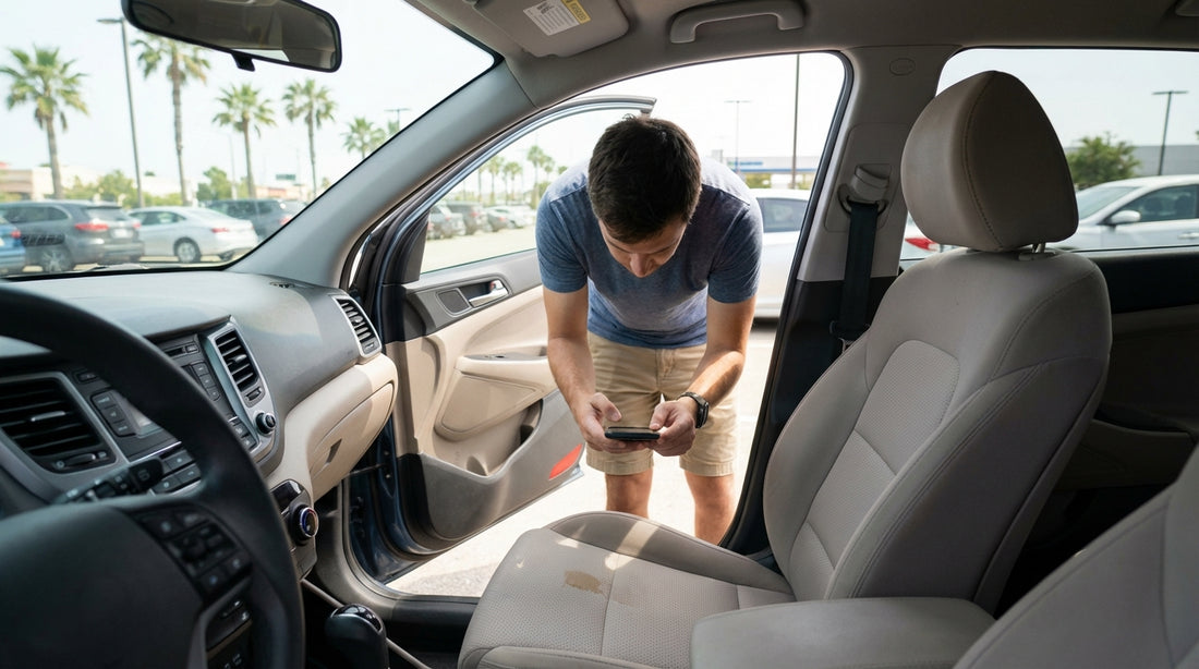 At return, repeat the quick interior sweep. Even though your focus is documenting existing stains at pick-up, a fast check at return protects you from accusations of new damage. If anything looks different, photograph it immediately.