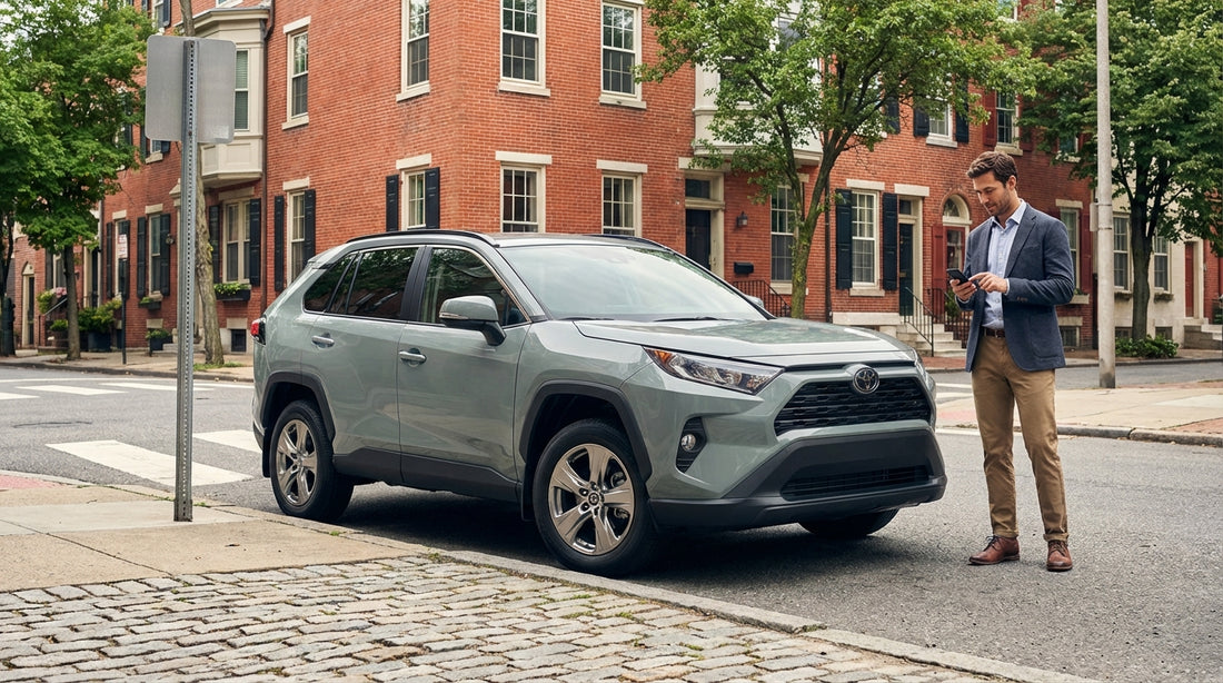 A person using a smartphone to pay for their car hire parking on a city street in Philadelphia