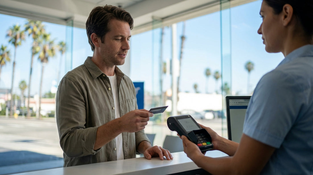 This guide explains exactly what to look for on the terminal and on your receipt, plus what to say if the payment is started in the wrong currency. The examples focus on typical car rental desk setups around LAX and the wider Los Angeles area.