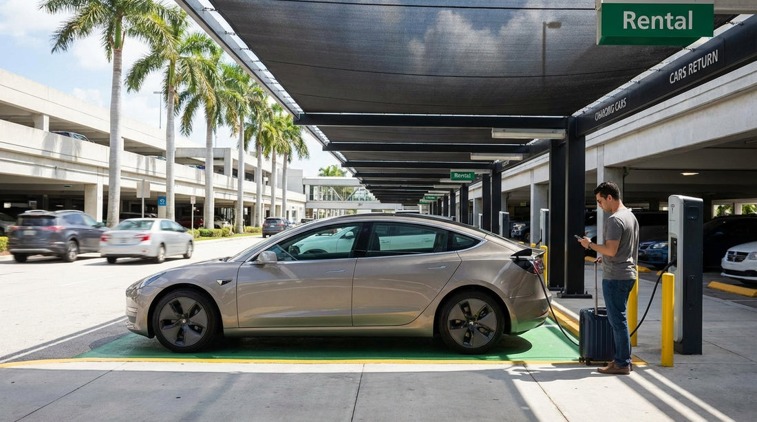 This guide explains what usually happens at the Miami Airport desk, how an EV-to-petrol swap can affect your total, and what you should confirm in writing so there are no surprises after drop-off.