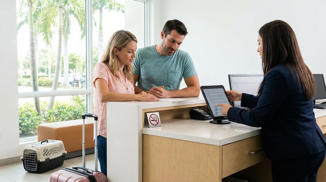 Before you sign: ask the agent to show you where cleaning fees, smoking fees, and pet terms are written, not just described verbally. Then confirm whether fees are fixed, “from”, or “up to”, and whether taxes apply. Clarify whether vaping is treated as smoking. Confirm pet rules, especially whether a carrier is required.