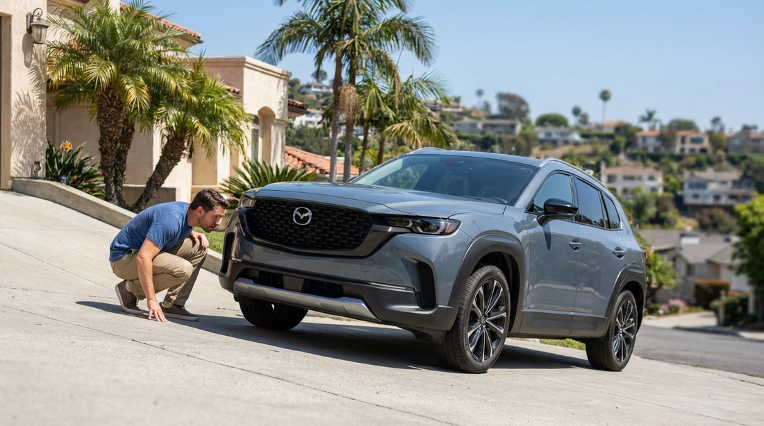 What photos help most if there is a dispute later? Wide shots of the steep driveway transition, close-ups of any marks on the underside, a video sweep showing hanging parts or drips, and a photo of the instrument cluster showing warning lights or none.