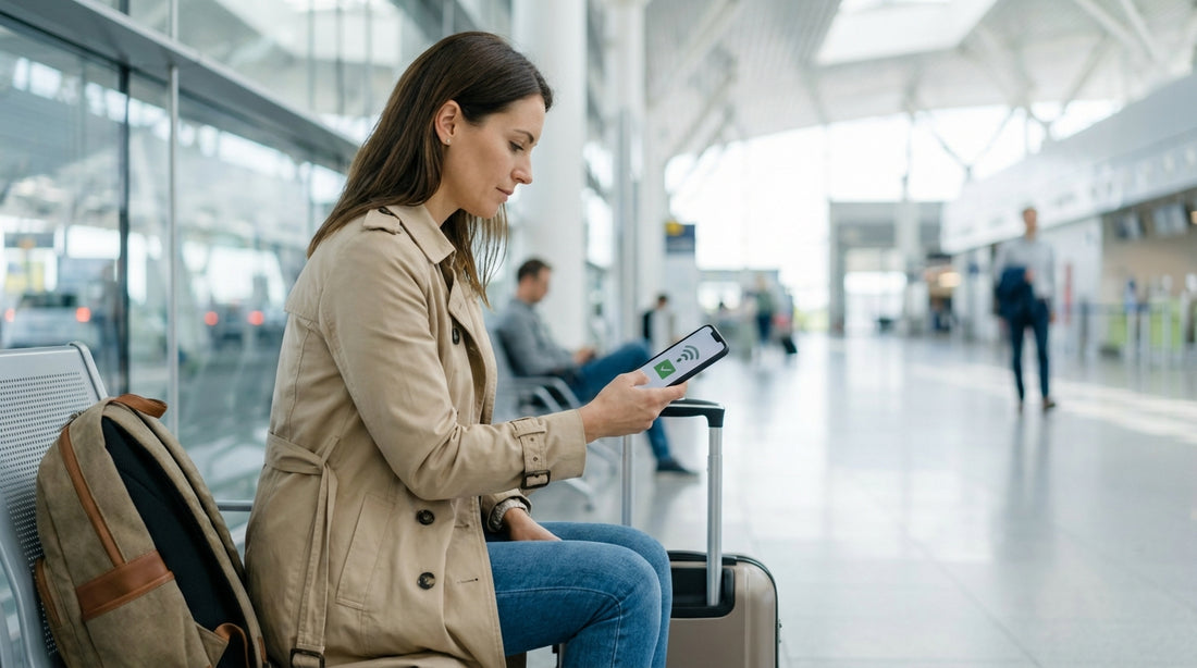 How can I confirm the eSIM is working before leaving the terminal? Turn off Wi-Fi briefly and open maps, load an email, and send a message. If those work on mobile data, you are set for navigating to your car hire pick-up.