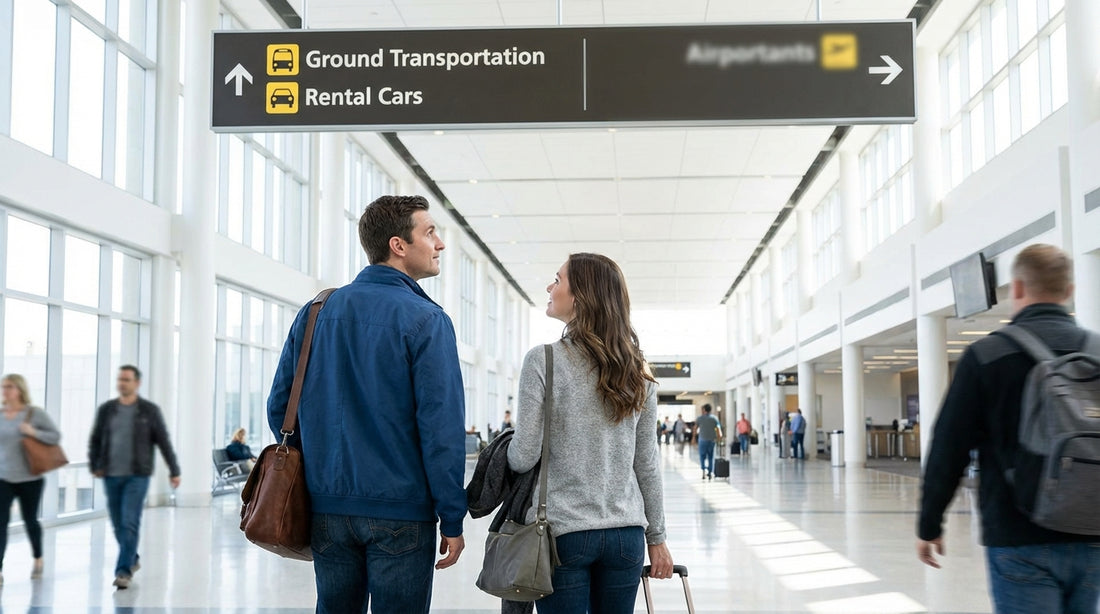 The steps below work for most arrivals, whether you land in a domestic terminal or on an international flight. The signage language is consistent, so focus on the words “Rental Car” and “Shuttles”, plus the ground transport pictograms.