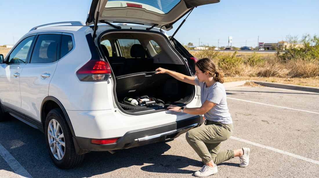 Even with a kit, carry drinking water, a torch, and a phone charger. In Texas heat, waiting safely matters. Also keep a high-visibility vest if you have one, and use hazard lights if stopped.
