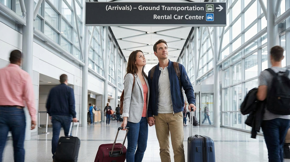 - Follow “Rental Car / Ground Transportation” signs from baggage claim exits.