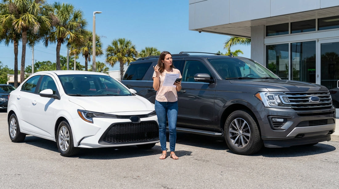Do not assume an SUV means more space. Some SUVs have less boot space than a full size sedan. If luggage space is your priority, compare options carefully, and if you want an SUV class for Florida driving, review what is typically included on SUV rental Florida MIA.