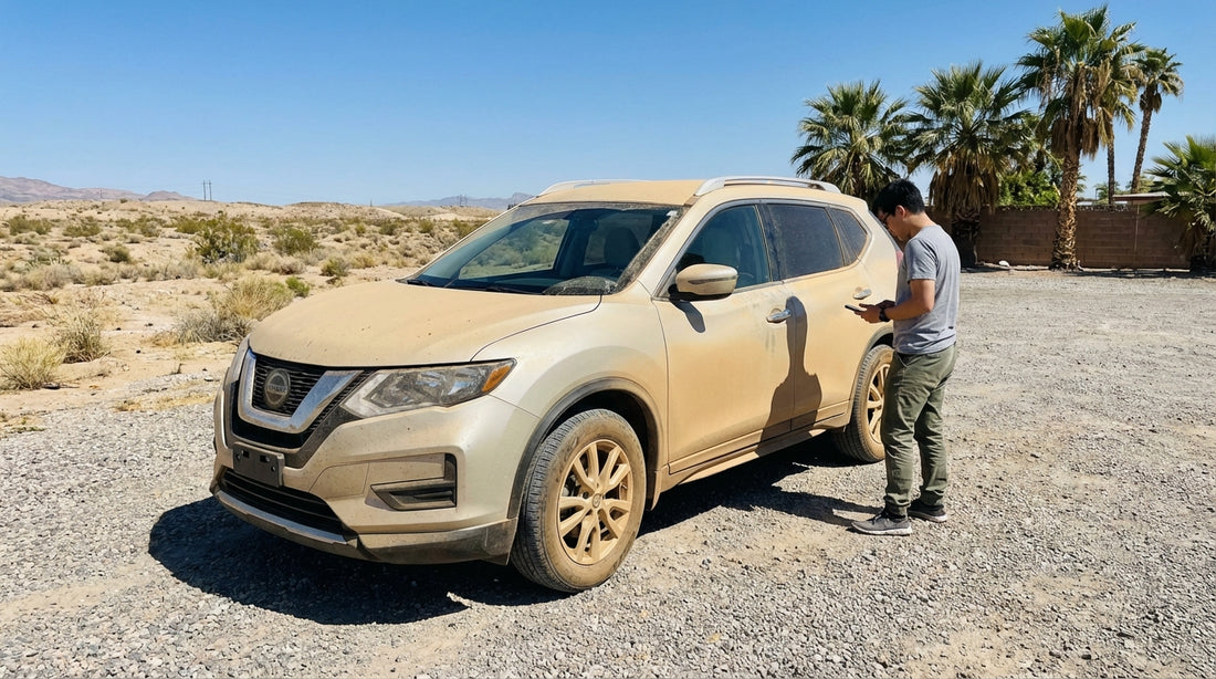5) Interior sand and grit. Desert dust comes with fine grit. If floor mats are packed with sand, seats are gritty, or cupholders and door pockets are full of debris, this is more likely to generate a cleaning fee than an exterior dust layer.