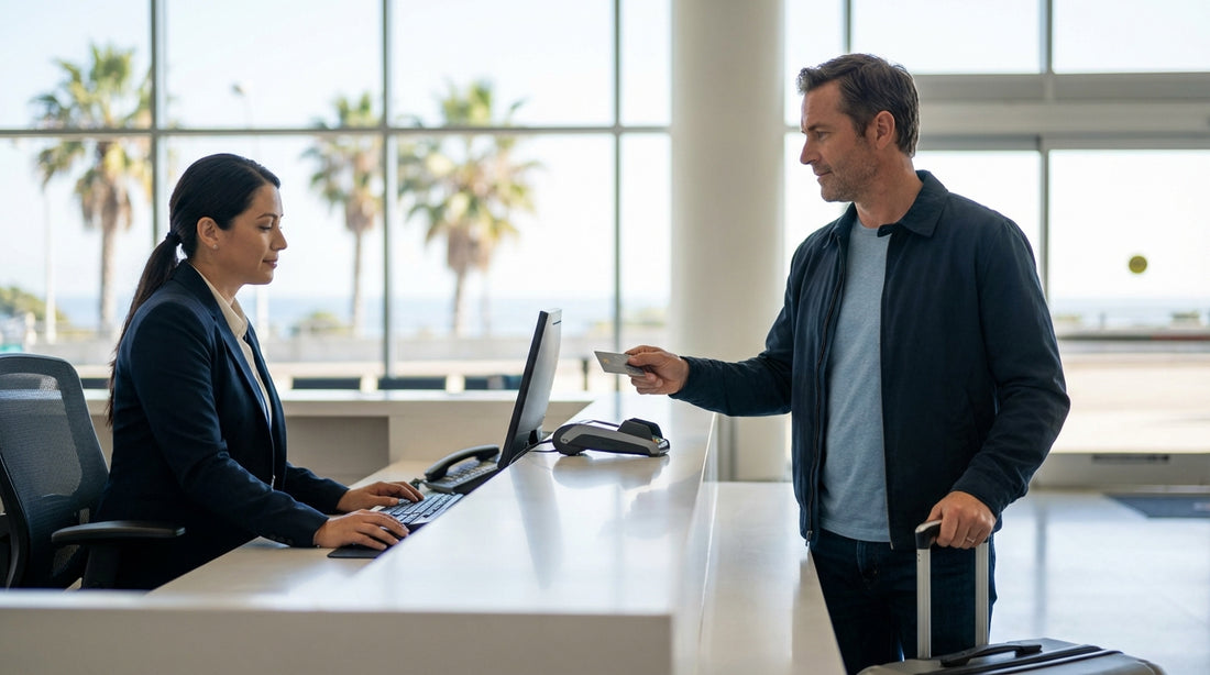 “Credit card required at pick-up” is also shorthand for several eligibility checks that happen in a few minutes at the counter. The agent is not only taking payment, they are verifying that the person collecting the car is permitted to take responsibility for it.