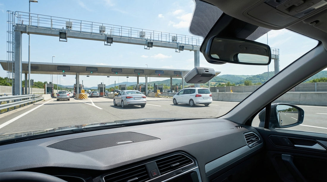 Before you drive away, check the windscreen area for an installed transponder unit or a holder with instructions. Some rental firms have a switchable device, others have a permanently mounted tag. If the vehicle has an active rental transponder and your own tag is also present, you risk double billing attempts or unpredictable routing of charges. You want one clear method.