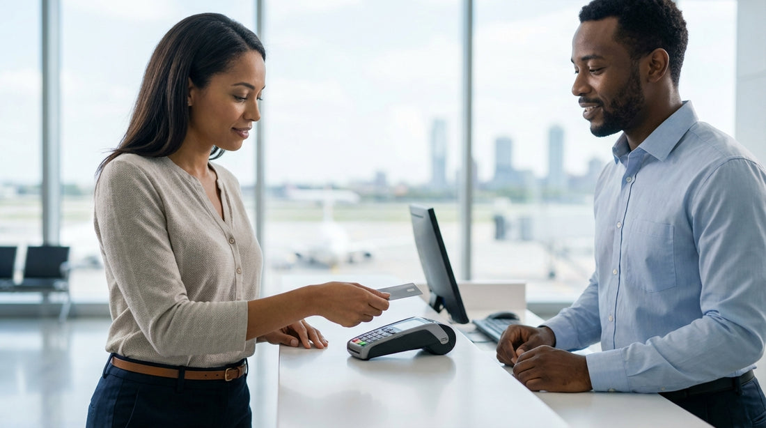 JFK serves a high volume of international travellers, and DCC is marketed to merchants as a way to increase revenue. Payment providers may set up terminals to detect a foreign-issued card and automatically prompt a choice of currencies. If a customer taps quickly, or if the counter agent selects the option for you, DCC can be accepted in seconds.