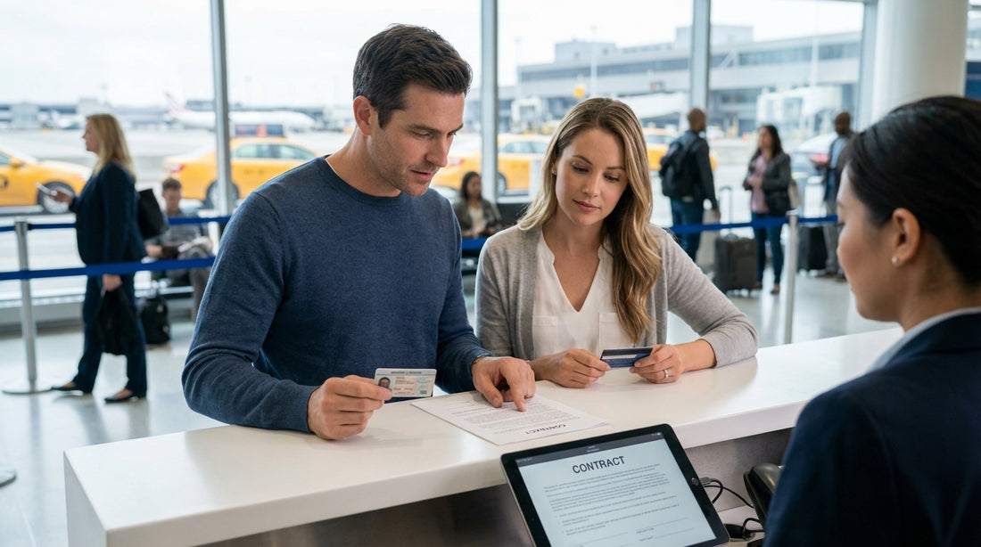 While each supplier sets its own conditions, most follow a similar process at pick-up in New York, including at major airport counters.