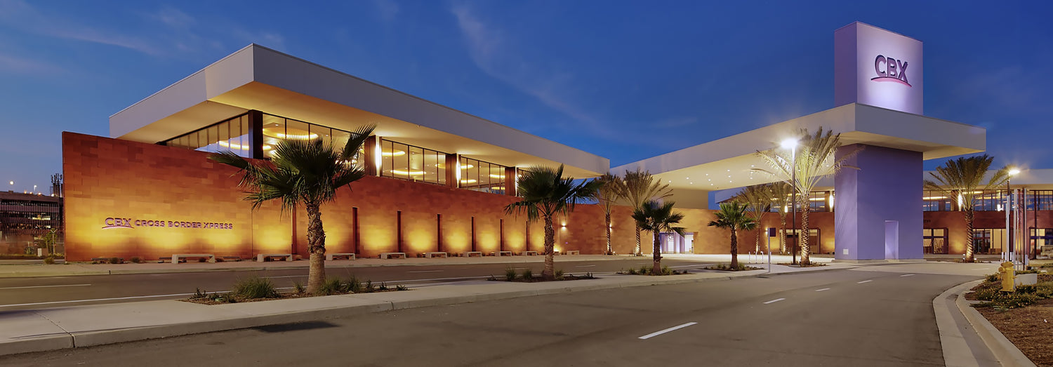Retirar um carro alugado no Aeroporto CBX segue uma sequência específica que difere de um aeroporto padrão nos EUA, pois você chega cruzando uma ponte pedonal de skywalk vindo do Aeroporto Internacional de Tijuana (TIJ) no México.